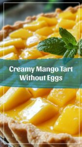 Creamy, no-bake mango tart with a crunchy crust! This stunning vegan dessert is easy to make with simple ingredients and requires no eggs. Perfect for summer. vegan mango tart, eggless …