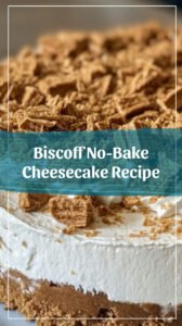 No-bake Biscoff cheesecake with a crunchy cookie crust! This easy, decadent dessert sets in the fridge – no oven needed. Perfect for any occasion. Biscoff cheesecake, no bake cheesecake, Lotus …