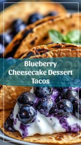 Creamy blueberry cheesecake filling meets a sweet, crispy taco shell! This stunning and easy dessert is the ultimate summer treat. blueberry cheesecake tacos, dessert tacos, easy dessert recipe, summer desserts, …