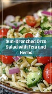 Brighten your table with this vibrant Sun-Drenched Orzo Salad! Bursting with creamy feta, fresh herbs, and a lemon vinaigrette. Perfect for picnics and potlucks! orzo salad, summer salad recipe, easy …